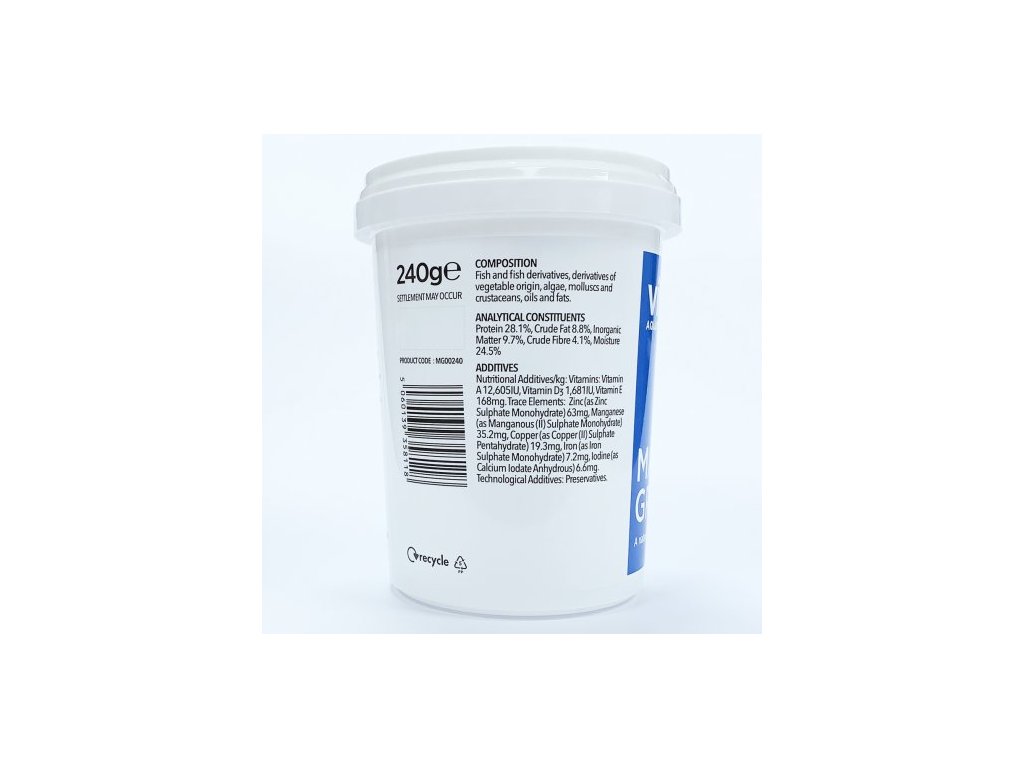 Složení: Produkty rostlinného původu, ryby a rybí produkty, řasy, měkkýši a korýši, oleje a tuky, minerály.