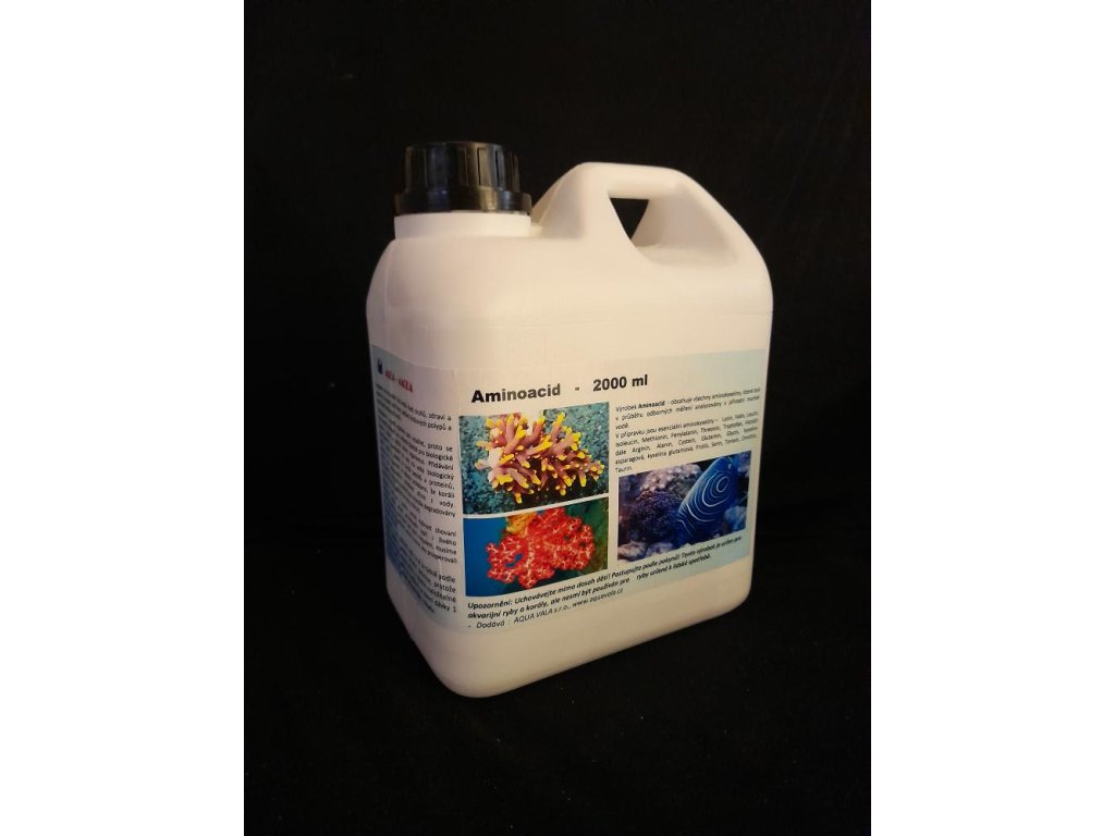 Výrobek Aminoacids - obsahuje všechny potřebné aminokyseliny, které byly v průběhu odborných měření analyzovány v přírodní mořské vodě a jsou prokazatelně důležité pro korály.