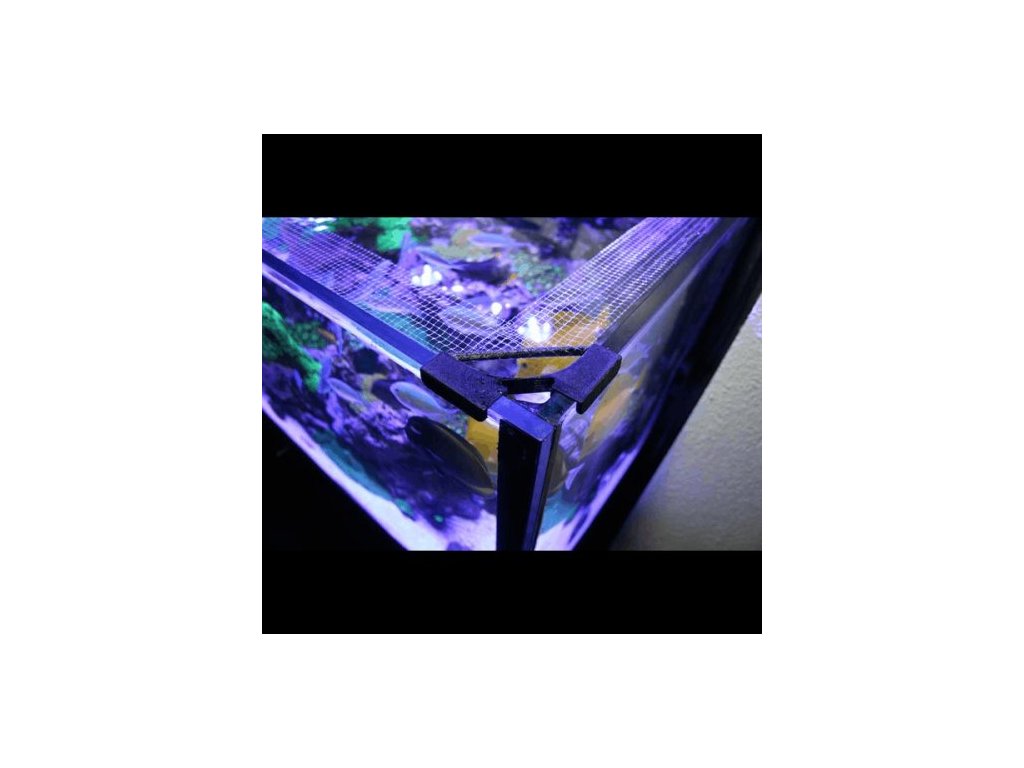 Na rozdíl od běžných síťových krytů tento nemusí pokrývat celou plochu. Testy ukázaly, že DIY kryt akvária Bananaquarium může zabránit i jediné rybě ve vyskočení z akvária, i když zakrývá pouze rohy najednou. Tím je zajištěno zachování plné krásy vašeho bezrámového akvária.