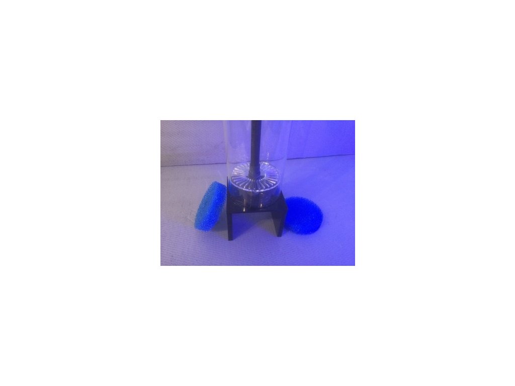 Jednoduché řešení, úspora místa - čerpadlo je integrované pod filtračním válcem do kvádrové podstavy (stojánku) z transparentního acrylu. Acrylový válec (tělo filtru) je jednoduše nasazen na stojánek, takže se při čištění nemusí odnášet filtr i s čerpadlem.