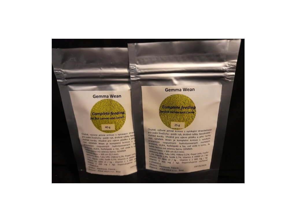 GEMMA Wean Micro je formulován s vysokým procentem rozpustných hydrolyzovaných mořských proteinů, HUFA, fosfolipidů a řas, což vede k tomu, že každá částice má zelenou barvu. GEMMA Micro je vysoce stabilní krmivo vykazující vynikající fyzikální vlastnosti.