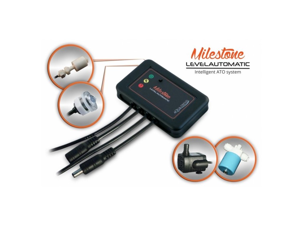 Levelautomatic Milestone je velmi moderní mikroprocesorové zařízení určené k doplnění odpařené vody v akváriu vybavené filtračním systémem založeným na spodní nádrži. Přístroj je vybaven dvěma snímači hladiny kapaliny, optickým, který slouží k zahájení procesu doplňování, a jazýčkovým přepínačem, který hraje dozorovou roli. Automatická náplň Levelautomatic Milestone může pracovat s DC čerpadlem nebo solenoidovým ventilem DC (zařízení je dodáváno s jednou z těchto součástí).