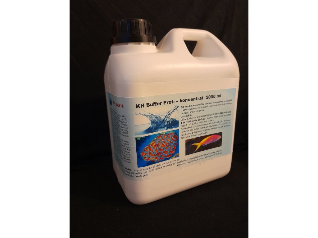 KH/pH Buffer Profi koncentrat - jedná se o složitější Buffer, který obsahuje celkem 6 složek. Slouží nejen k udržení hladiny uhličitanů, ale zvedá i pH k požadované hodnotě 8,2. Obsahuje stabilizátory pH boritany, malou část draslíku, molybden a částečně i fluor, kterého bývá všeobecně málo v akvarijní vodě. Je to nejvíce používaný Buffer pro svoji nejlépe vyváženou strukturu.