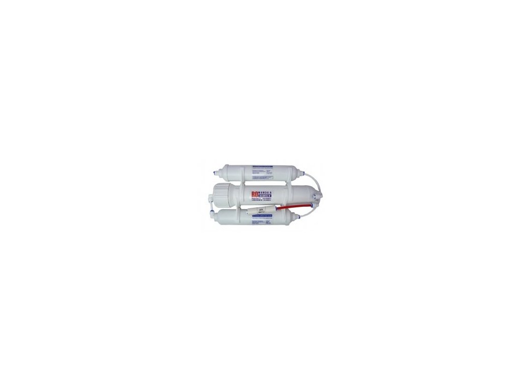 Reverzní osmóza pro demineralizaci vodovodní vody. Průtok 190 l/24 hod. 2 předfiltry (uhlíkový a mechanický). Lze zavěsit na stěnu. V příslušenství je i kulový ventil a fitinky pro připojení na vodovodní řad.