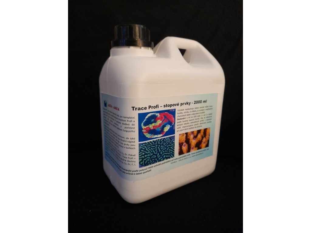 Trace Profi obsahují – Mn, Fe, Mg, Cr, Ni, Co, Cu, Zn. Pokud budete používat tyto 3 produkty dohromady – Trace Profi + Strontium Profi + Iodide Profi – doplníte do akvária všechny tyto prvky : Sr, K, Li, Mn, Fe, Mg, Cr, Ni, Co, Cu, Zn, F, I, B, Mo, Br.